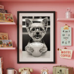 Category: Digital Prints Tags: animal with glasses, black white dog, coffee lover gift, cute dog, dog breed art, dog coffee, funny yorkie art, home decor, humorous animal, kitchen decor, latte art print, pet art, wall art, yorkie gift, yorkie print, yorkshire terrier décor, yorkshire terrier print Brand: Print Studio